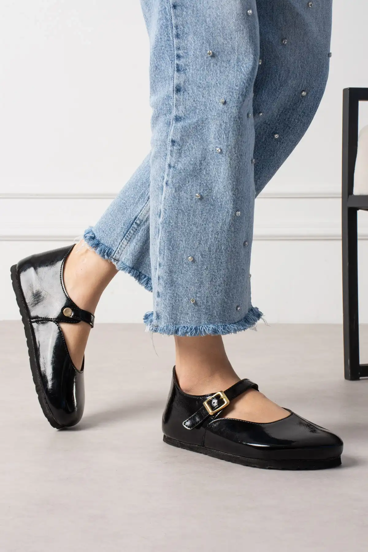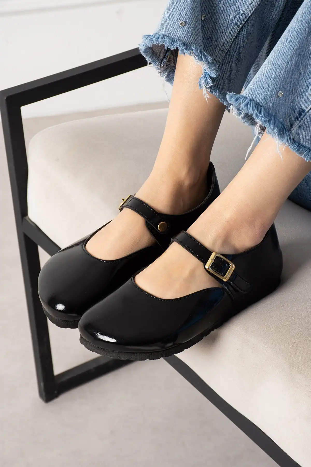 Alora Minimal Kadın İthal Kumaş Babet - Parlak Siyah, şıklık ve rahatlığı bir arada sunan bir seçenektir.