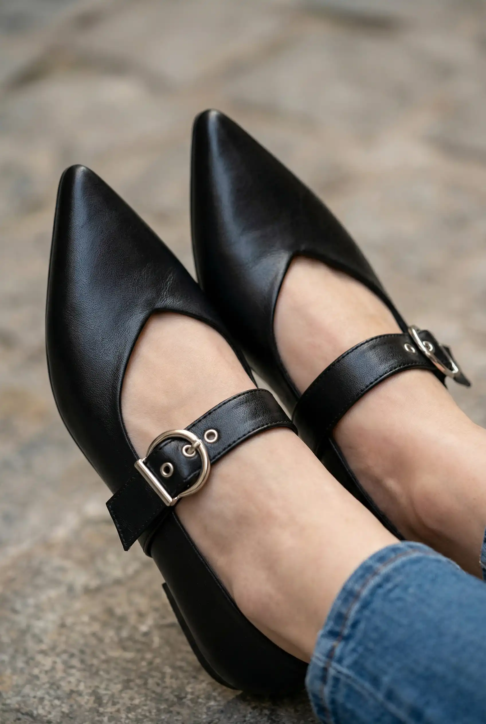 Brano Kadın Kemer Detay Deri Babet Siyah, şıklık ve konforu bir arada sunan bir seçenektir. İşte ürünün öne çıkan özellikleri: