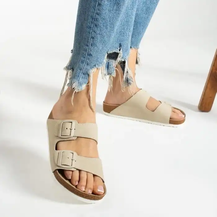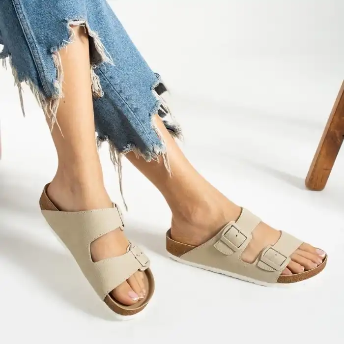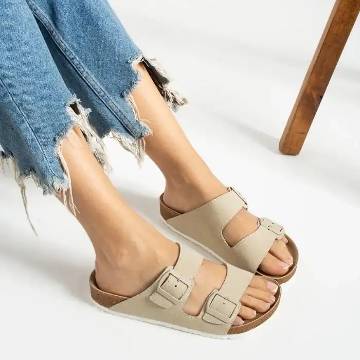 Deri Tozu Dikişli Terlik - Bej, şıklık ve konforu bir arada sunan bir terlik modelidir. İster evde ister dışarıda rahatlıkla kullanabilirsiniz. Ürün özellikleri: