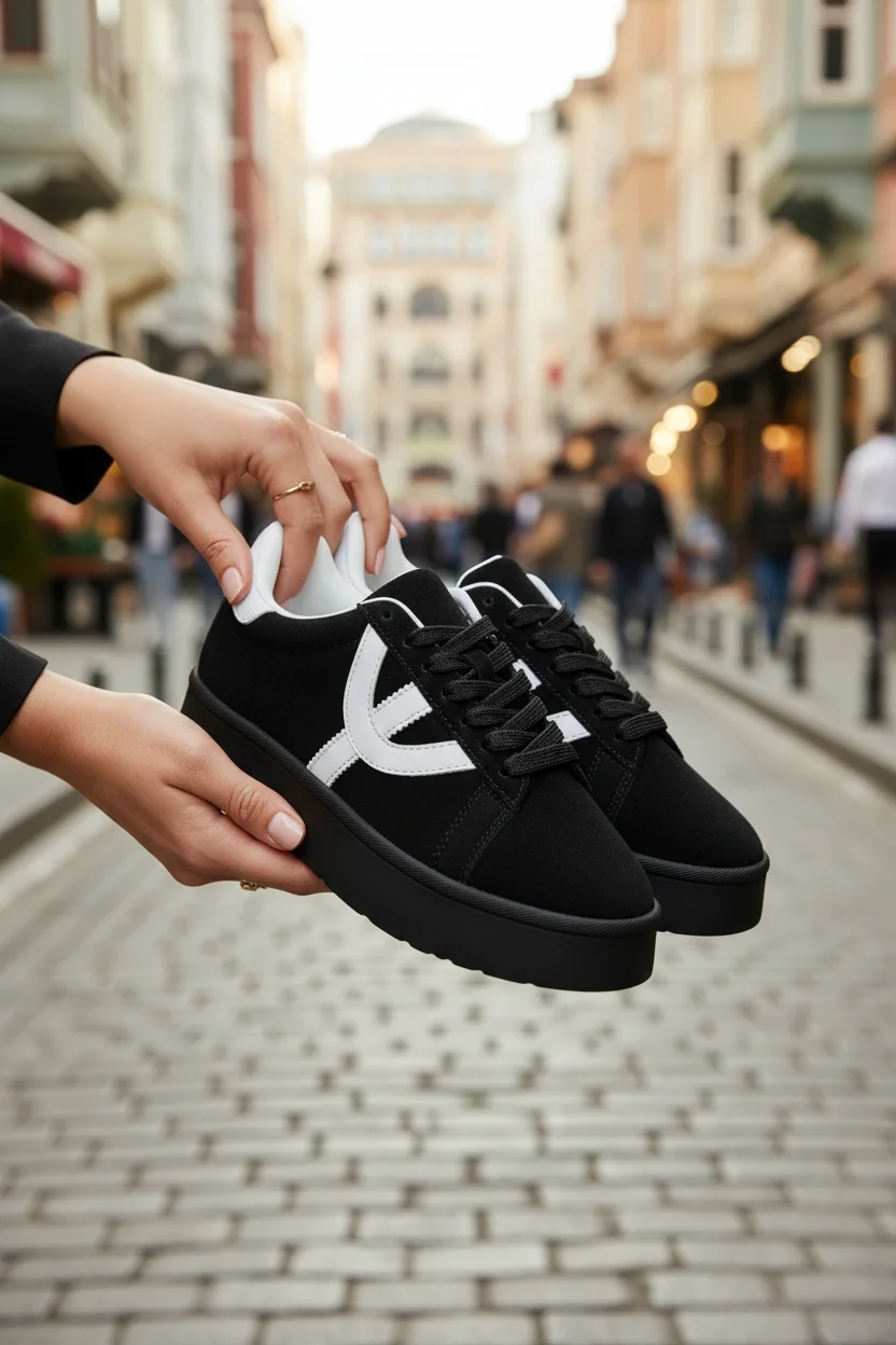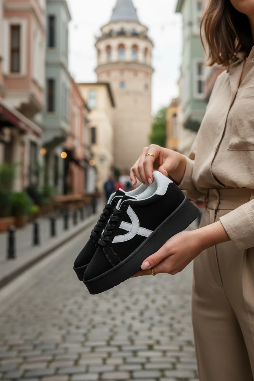 • Platform tabanı sayesinde boyunuzu optik olarak uzatacak bir görünüm sunar.
