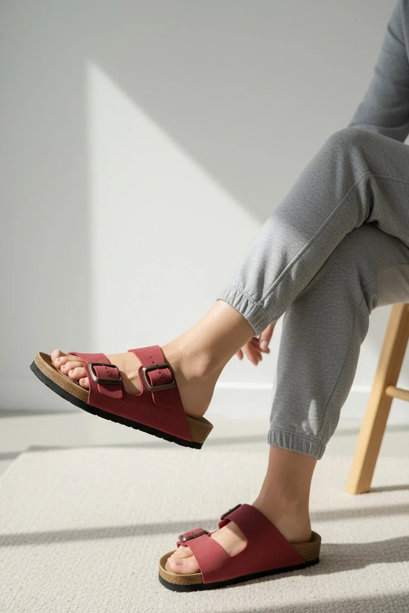 Bordo rengiyle şıklığı ve rahatlığı bir arada sunan Kadın Çift Tokalı Terlik, günlük kullanım için ideal bir seçenektir. Ortopedik tabanı sayesinde ayağınıza destek sağlarken, şık tasarımıyla da göz kamaştırır. Yaz aylarında tercih edebileceğiniz bu terlikler, hem şehir içinde hem de tatilde rahatlıkla kullanabileceğiniz bir stildir.