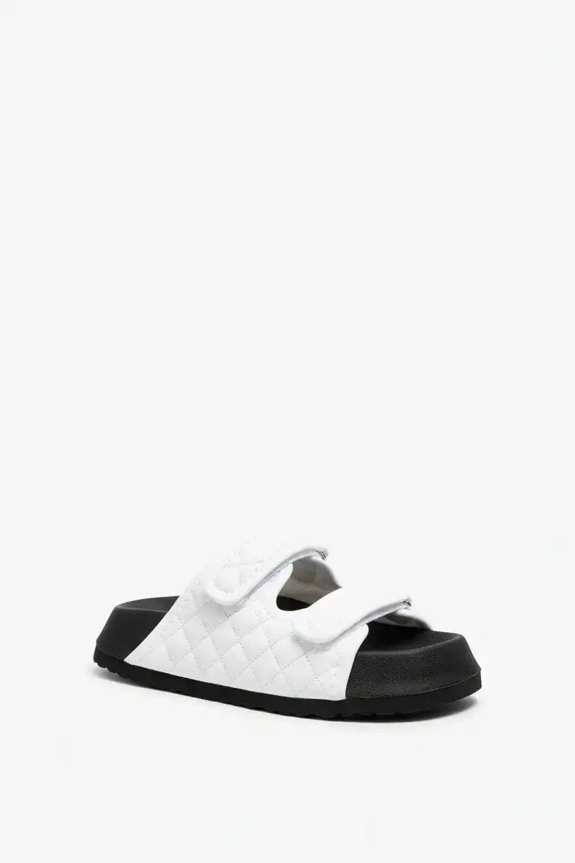 Yumuşak dolgulu kapitone detaylarıyla hem dikkat çeker hem de ayağınızı sararak ekstra rahatlık sunar. İki adet ayarlanabilir cırtcırtlı bant, kişisel konforunuzu en üst düzeye çıkarır.
