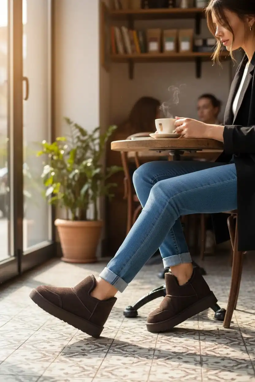 Lusso Kalın Taban Kışlık İçi Kürklü Kadın Bot, şık tasarımı ve sıcacık kışlık iç kısmıyla dikkat çekiyor.
