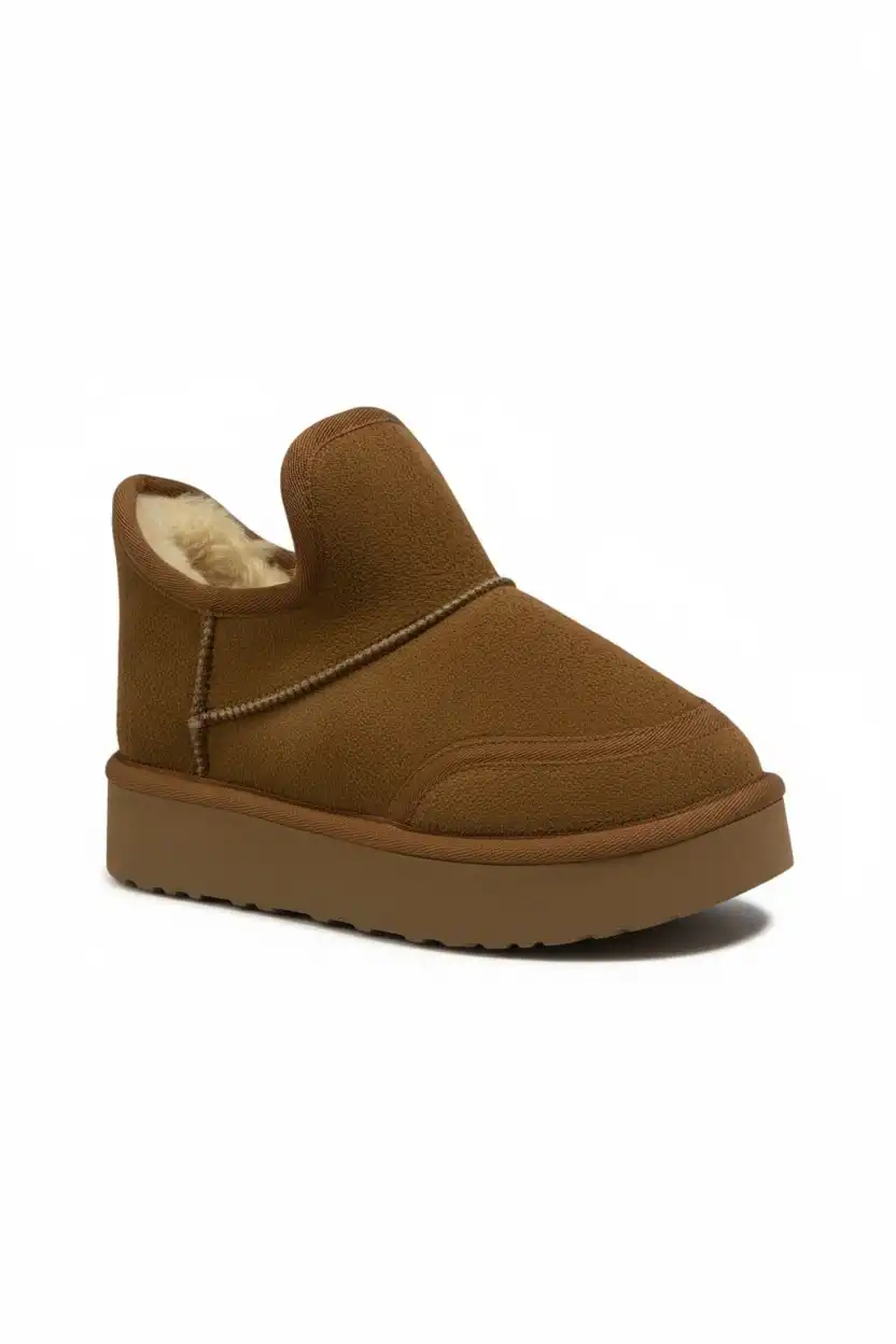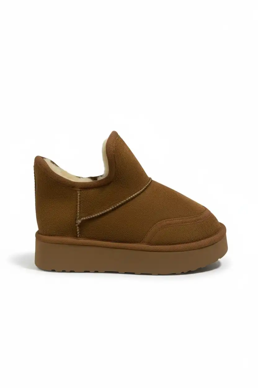 Lusso Kalın Taban Kışlık İçi Kürklü Kadın Bot - Taba, stil ve konforu bir araya getiren şık bir seçenektir.