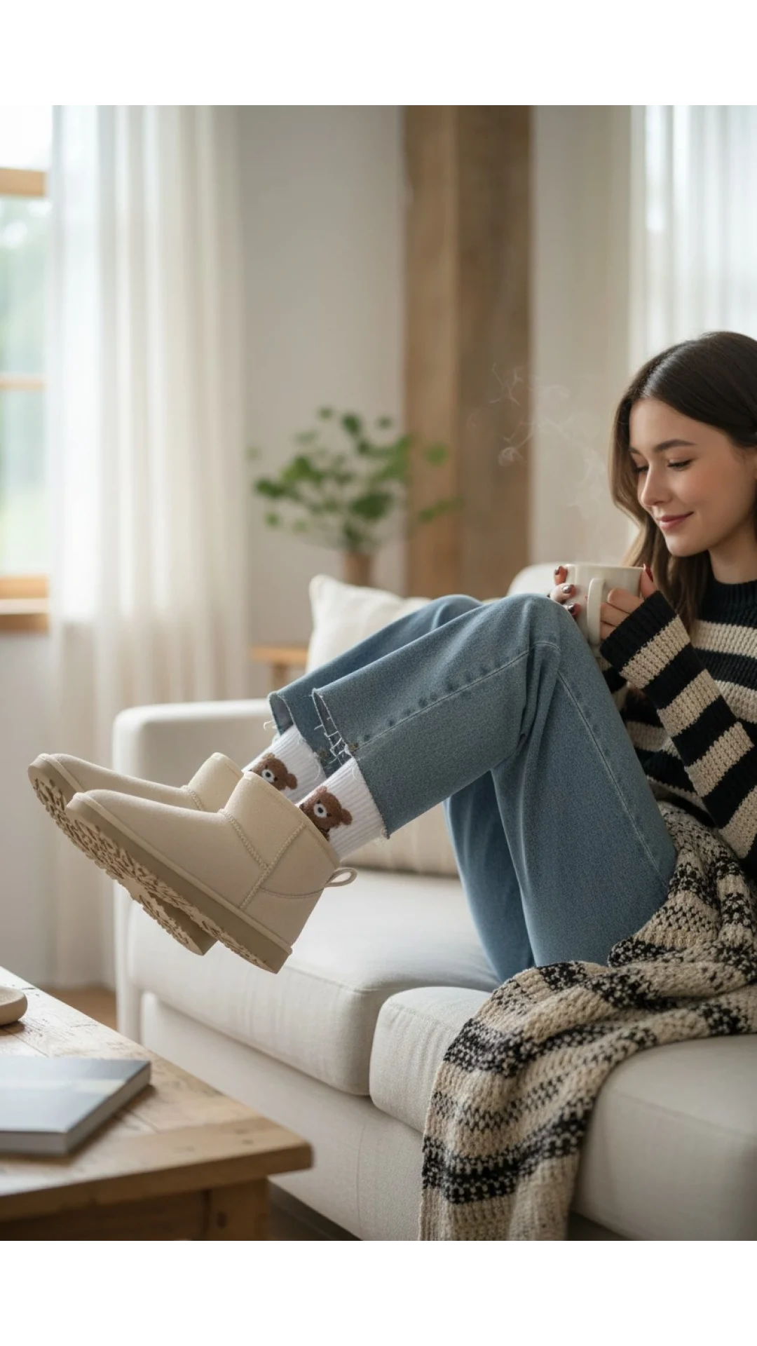 • Yumuşak süet malzeme ve tüylü detaylarıyla ayaklarınızı sıcacık tutar.