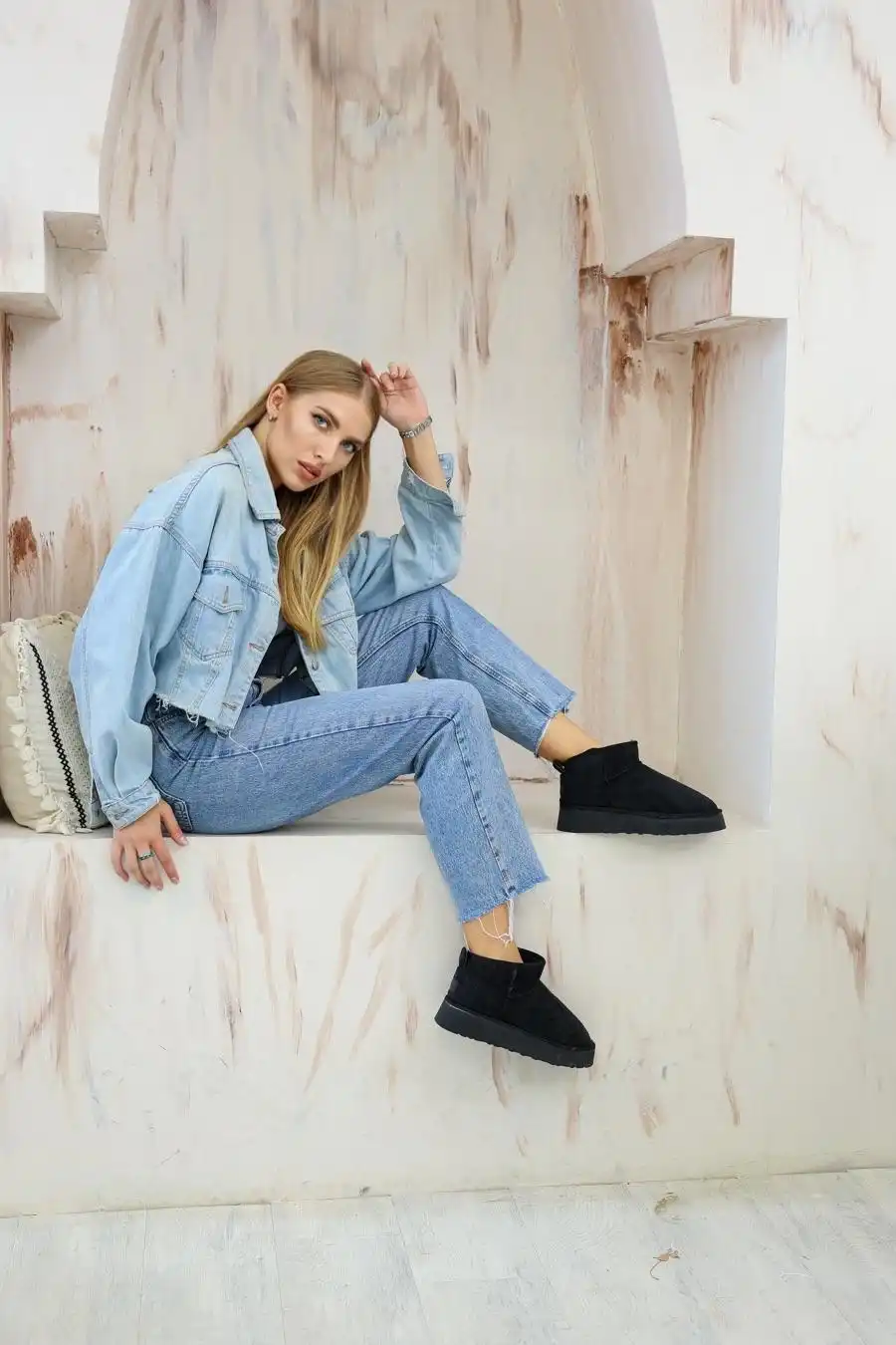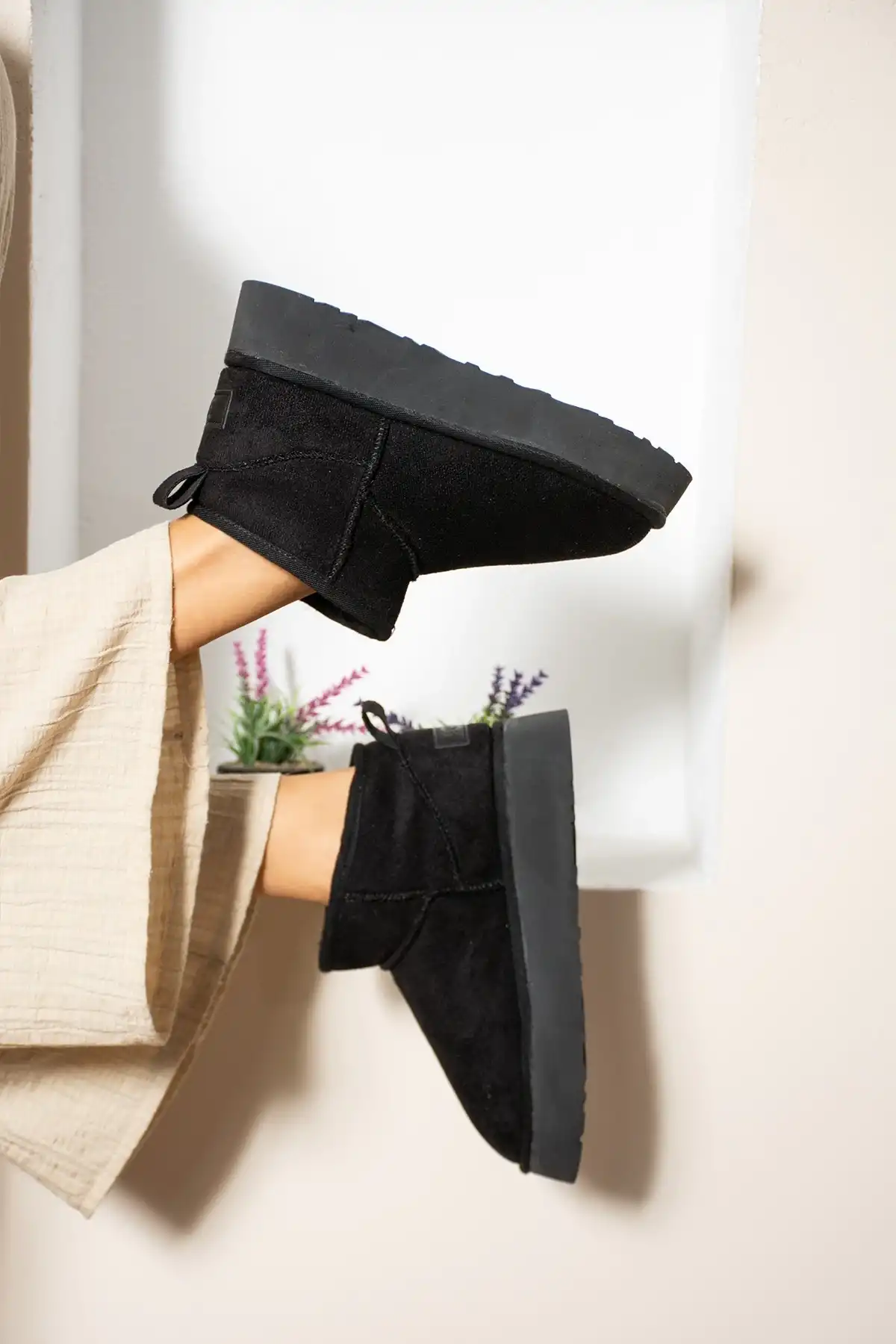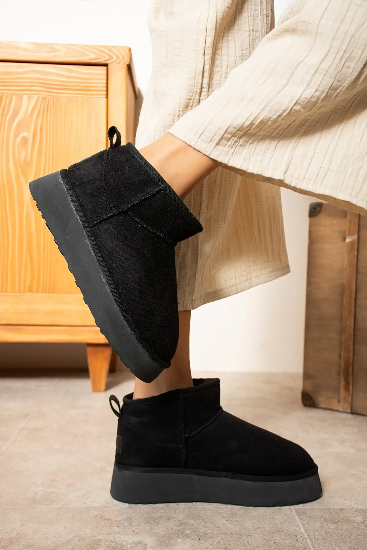 Mini Bot Classic, siyah rengiyle her tarza kolayca uyum sağlar ve ayakkabı koleksiyonunuzun vazgeçilmezi olmaya adaydır.