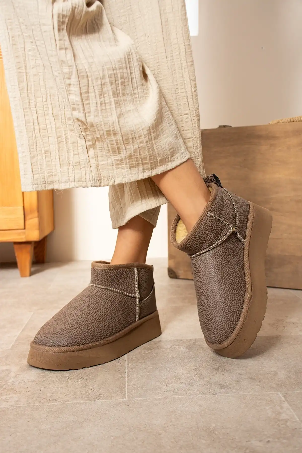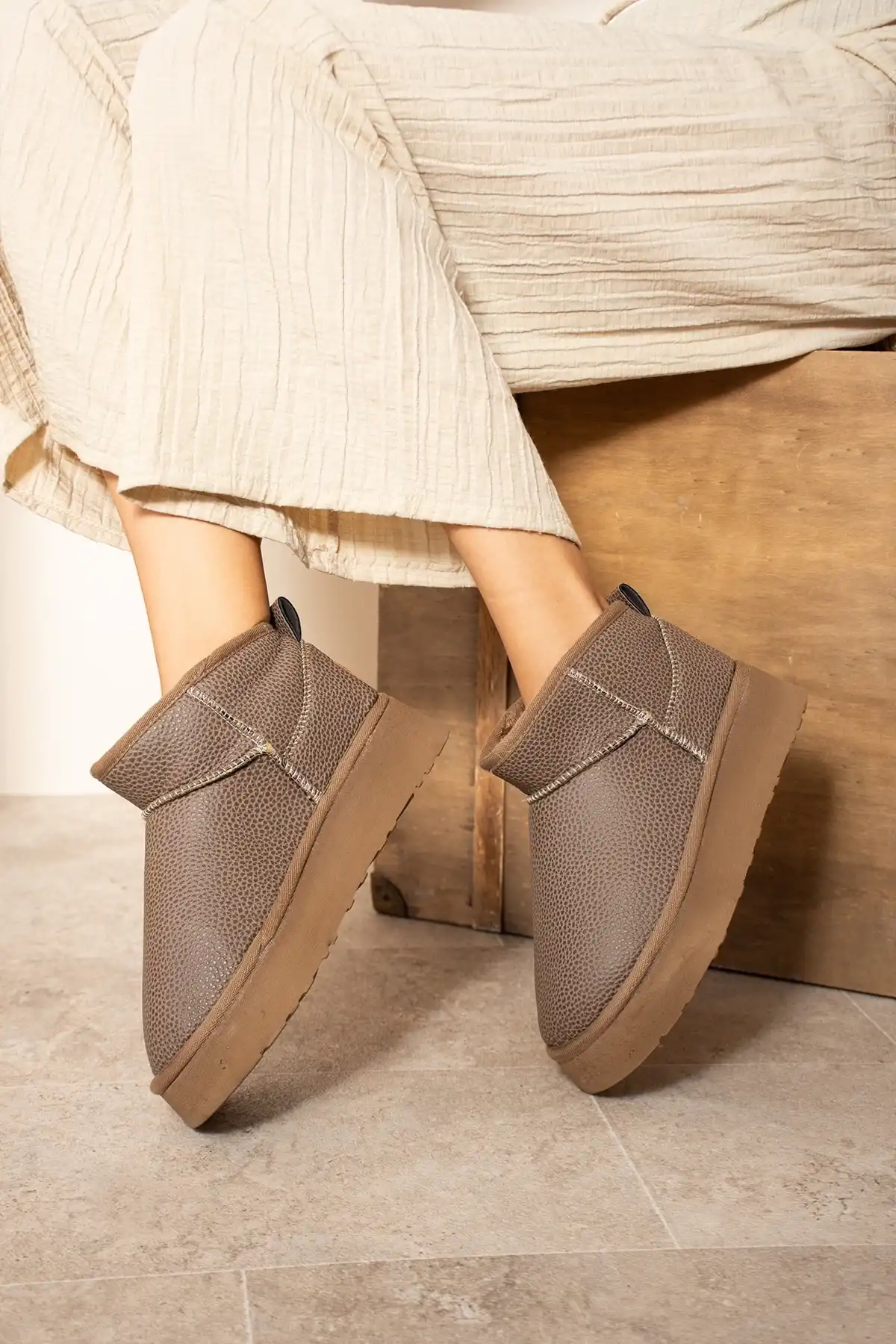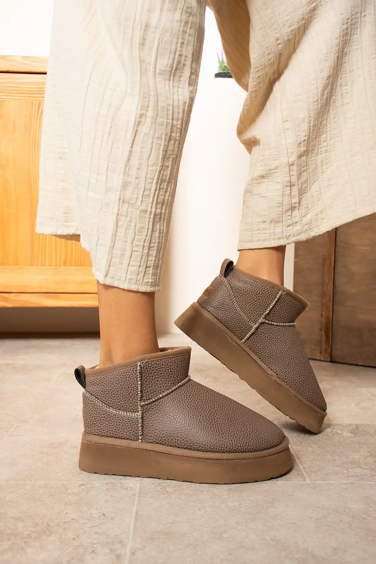 Mini Bot Classic Suni Tüylü Kadın Bot - Vizon, şık ve konforlu tasarımı ile öne çıkan bir bot modelidir.